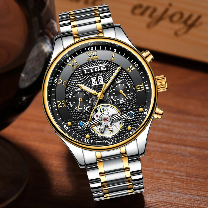 REVIEW TOP SELLER LIGE Top Luxury Fashion Men's Automatic Machinery Business Clocks Military stainless steel waterpro